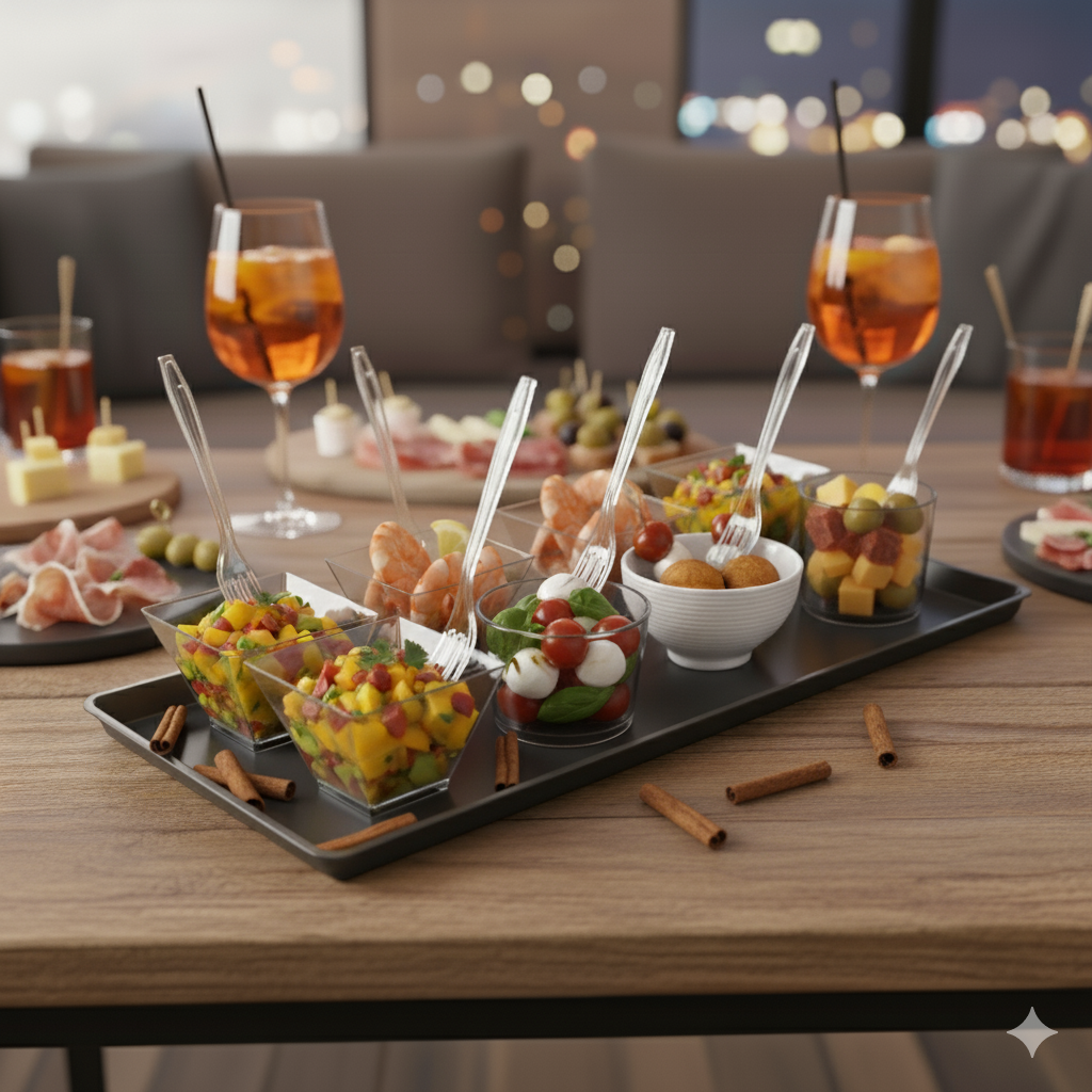 Finger Food (PS - Polistirene): Realizziamo contenitori dal design raffinato, ideali per esaltare visivamente le creazioni culinarie grazie alla trasparenza e alla brillantezza del materiale.